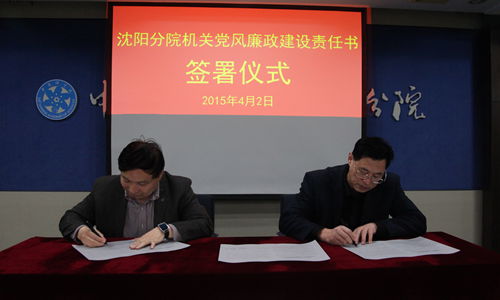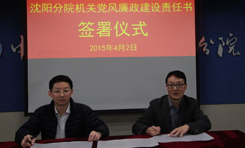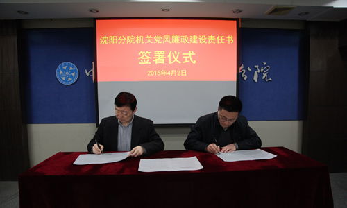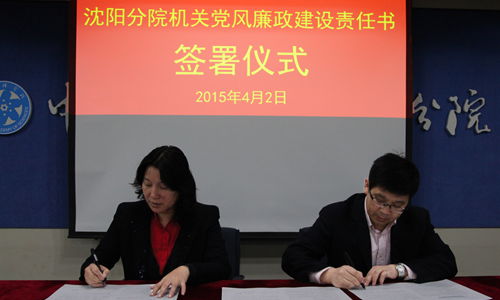 按照院党组关于加强中科院党风廉政建设的总体部署,1月末沈阳分院已组织分院院长、党组书记与系统各研究所所长、党委书记分别签订了个性化反腐倡廉建设责任书、党风廉政建设责任书。此次,分院领导班子成员与机关各部门负责人签订党风廉政建设责任书,是按照沈阳分院党风廉政建设责任制实施细则的要求,扎实抓好“两个责任”落实的又一具体措施。