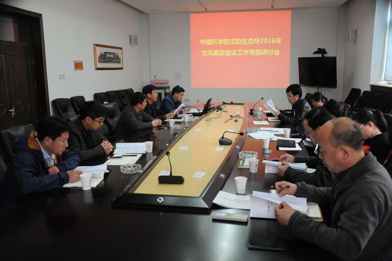 4月8日,中国科学院沈阳应用生态研究所召开本年度第一次党风廉政建设工作专题研讨会,学习传达近期上级有关重要会议精神、落实沈阳生态所2016年纪监审工作要点,全面推进沈阳生态所党风廉政建设工作。沈阳生态所所纪委委员,办公室、科技处、人事处、财务处、综合处、资产处、信息中心等部门负责人及相关工作人员共12人参加会议。