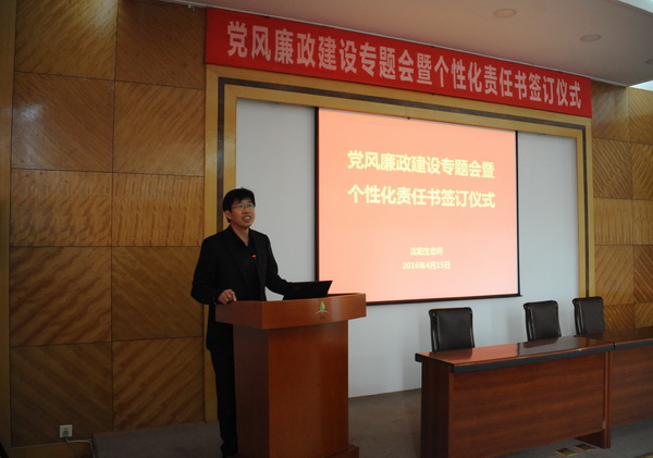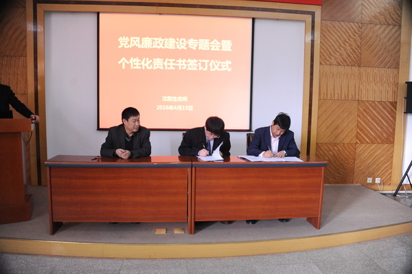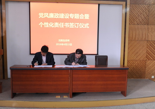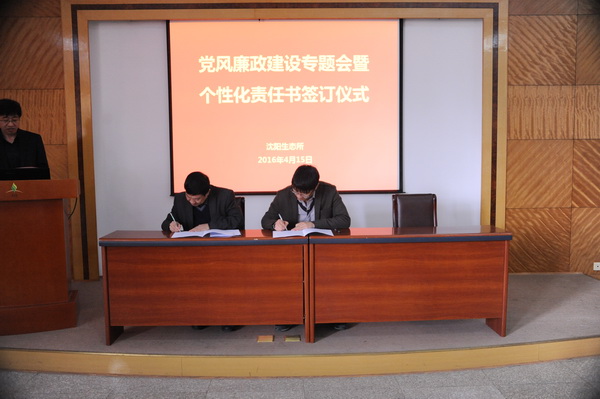 为全面推进落实“两个责任”和“一岗双责”,进一步加强我所党风廉政建设和反腐败工作,4月15日,中国科学院沈阳应用生态研究所举行了党风廉政建设专题会暨个性化责任书签订仪式,对进一步推进党风廉政建设和反腐败工作进行部署。所领导班子成员、党委委员、纪委委员、学科组组长、管理与支撑部门负责人、野外台站站长、控股公司总经理及机关工作人员等60余人出席会议。会议由沈阳生态所副所长、党委副书记、纪委书记郭秀银主持。