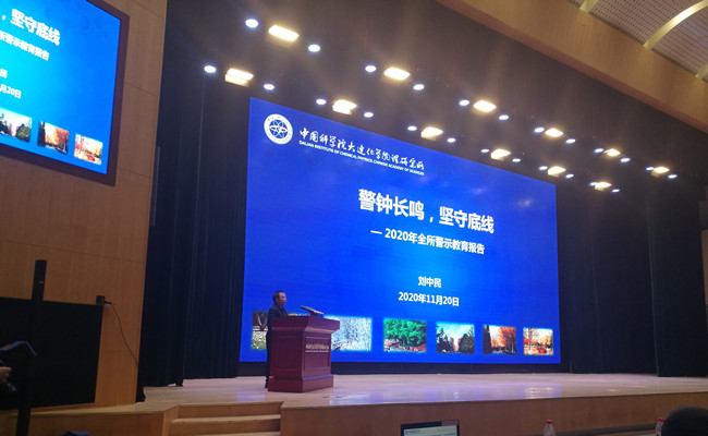 随后,刘中民系统梳理了中科院巡视发现的有关问题、通报了中科院违纪违法及科研诚信典型案例。刘中民对每个案例进行了剖析,要求全所党员干部和职工要进一步强化纪律和规矩意识,严格履职尽责;要坚持底线思维,增强红线意识,在研究所实现跨越发展的漫漫征程中共同营造风清气正的科研生态环境。