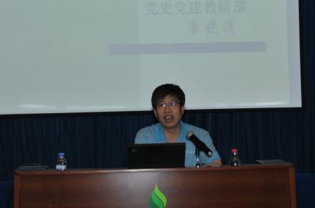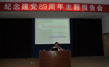 为了纪念中国共产党成立89周年,全面动员开展创先争优活动,7月1日下午,沈阳生态所举办纪念建党89周年主题报告会,邀请辽宁省委党校党建党史研究室主任唐晓清教授做了以“新形势下如何加强和改进党的建设”为主题的报告。全所有180余名党员参加了此次报告会。