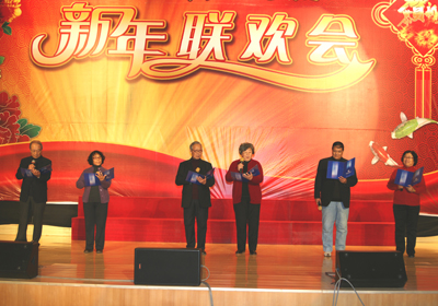 开场舞《好运来》拉开了联欢会的序幕,火红的绸带热情舞动,舞出了老同志热爱生活的昂扬激情;老同志自创的三句半《抒情怀》、《小日本鬼子》,吼出了老同志的爱与憎的炙热情怀;男生小合唱《故乡的小路》、女生四重唱《今天是你的生日》演绎了老同志的悠悠深情;女生独唱《月光泪》、《蓝色的蒙古高原》和男女声弹唱《白毛女》,展示了老同志美妙的嗓音;京剧《智斗》、《霸王别姬》、《梨花颂》,给听众送来了国粹经典别样的听觉享受;民乐合奏《春江花月夜》、《金蛇狂舞》、葫芦丝齐奏《高山顶上修条河》、《山清水秀好风光》,令听众沉浸在跳动的音符之中;藏族舞蹈《听一听》舞出了藏族人民的虔诚与喜乐;配乐诗朗诵《在太空,你谱写着惊天动地的诗篇——献给钱学森》被三对老夫妻演绎得淋漓尽致,六位老人款款地道出了科研人对钱学森的万般崇敬;联欢会在老年大学合唱团的《远飞的大雁》和《七律 到韶山》优美的旋律中落下帷幕。