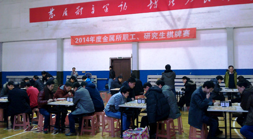 金属所2014年度“先进炭材料杯”职工研究生棋牌赛近日落下帷幕,此次比赛共分三个项目,分别是中国象棋、围棋和桥牌,来自18个分工会的60余名职工以及部分研究生参加了比赛。