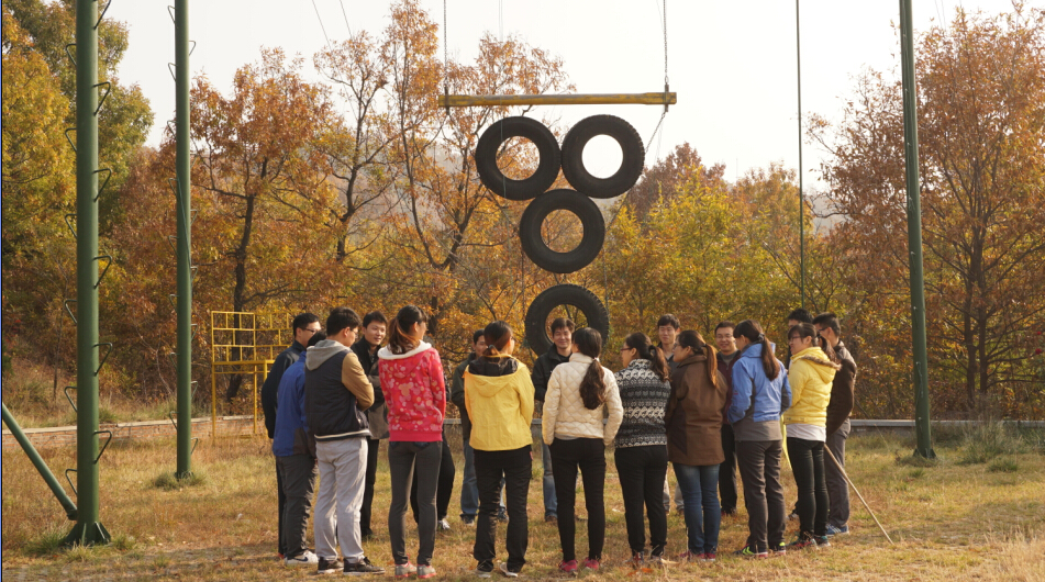拓展训练在美丽的军山脚下举行,参训人员被随机分成两队,两队队员分别创立了团队的队名、口号、队歌等,携手同心,迎接了包括“高空跳跃”和“高空断桥”等两项高难度项目的挑战。在教练的引导和队友的鼓励下,所有队员最终都克服了心理的恐惧,成功完成了挑战项目。