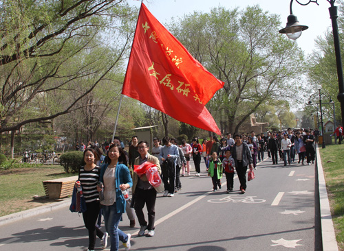 尽管是在周六,春末的热风把金属所大旗也吹得猎猎作响,但丝毫没有影响大家参与此次活动的热情。大家有坐公交车来的,有骑自行车来的,还有不少人是步行来的。所领导和各部门负责人对此次活动非常重视,积极带头参与,全所有23个分会、11个研究生班级的800余人参加了此次活动。