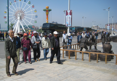 为了确保活动效果和人员安全,400余名老同志分两批两天进行活动,每天5台大客车载着200余名老同志首先前往位于瓦房店谢屯镇的香洲田园城旅游度假区参观游览。老同志们结伴参观了度假区中基本建成的香洲老年大学、香洲敬老院、酒文化一条街、葡萄园等,感受了新农村建设的快速发展。