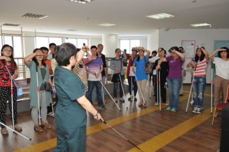 大家首先实地了解了该联合会对自闭儿童和脑瘫儿童的救助、治疗和教育等方式方法,组织参观了中国盲人图书馆沈阳分馆、视障文化展厅、残疾人康复中心等场所;并且通过亲身学习使用盲杖和体验“黑暗馆”,感受到盲人活动的不便利,深切体会到残疾人渴望平等生活的心情;活动结束前,参加活动人员向沈阳市残联捐赠了一些盲杖,希望能尽自己的一点点力量去帮助残疾人,让他们感受到关爱。