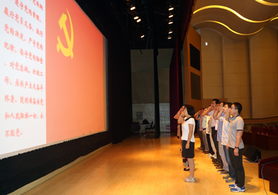 首先,会议举行了新党员入党宣誓仪式,18名新党员在领誓人党委委员杨宏的带领下,面向党旗,庄严宣誓。