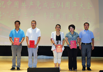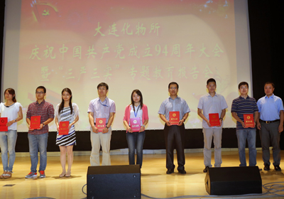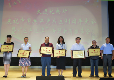 7月1日上午,中国科学院大连化学物理研究所庆祝中国共产党成立94周年大会暨“三严三实”专题教育报告会在能源楼会议中心隆重召开。在所的党委委员、纪委委员,各党支部书记、委员,管理及支撑部门副处级以上人员, 参加入党宣誓的新党员,受到表彰的先进集体代表和优秀个人及部分党员代表400余人参加了大会。会议由副所长毛志远主持。