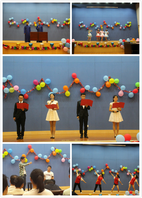 联欢会在大屏幕播放来自2015级全体研究生对研究所全体老师的美好祝福视频中拉开帷幕。接着,高玲瑜书记致开幕词,高书记以“师傅”、“师父”为例,勉励同学们努力奋进,继续传承、发扬中华民族尊师重教的传统美德。本次联欢会共分为青春篇、梦想篇、成长篇和感恩篇四个篇章。表演形式丰富多样,节目内容精彩纷呈。动感十足的舞蹈《GirlGril爱》迅速暖场,将全场气氛调动起来;相声《正反话》和小品《胖胖阿凯会客厅》以诙谐幽默的语言,夸张搞笑的动作让全场不断爆发出阵阵笑声;巴乌独奏《星月神话》与陶笛《千年风雅》则一下子将大家带入了唯美世界,动人的旋律让在场观众如痴如醉;深情的朗诵《芬芳桃李,巍巍师魂》带领大家一同感谢教诲、不忘师恩;歌曲《那一天》、串烧《童年收》、舞蹈《咋了爸爸》等则将联欢会推向一个又一个高潮。此外,四个篇章中穿插“你来比划,我来猜”、“抢板凳”和“正话反说”等游戏环节,小小的游戏大大地拉近的师生之间的距离,增进师生情谊。联欢会最终在2015级全体研究生带来的大合唱《当》中落下帷幕。