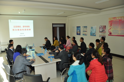 专题党课学习由支部书记郑立臣主持,所党委委员武志杰同志作了题为“立足岗位,坚守党性,努力推动科技创新”的党课报告,报告主要分为四个部分。首先,他从党员的信仰与宗旨出发带领大家重温了“两学一做”活动开展的背景、内涵、总体要求和重点学习内容,总结了农业支部学习教育的进展与成效。接着,他结合钱学森、师昌绪、袁隆平、李振声等著名科学家的模范事例,阐述了科技工作者的责任。随后,以我国经济发展的新常态、科技体制改革全面向纵深推进等为大背景,提出了当今科技工作者面临的时代机遇与挑战。最后,结合农业党支部和农业中心科研工作的实际情况,他阐述了中国科学院“三个面向”“四个率先”的新时期办院方针对每个在职党员的要求。
