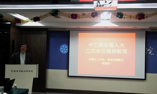 3月18日,沈阳分院传达十三届全国人大二次会议精神暨党课报告会在分院机关召开。十三届全国人大代表、沈阳分院院长韩恩厚传达会议精神。沈阳分院分党组书记、副院长姬兰柱,副院长马越红,分党组副书记、纪检组组长郭秀银以及机关全体职工参加了学习会议。会议由沈阳分院院长助理、办公室主任杨宏主持。