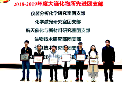 团委书记熊川男首先宣读了2018年度共青团中国科学院委员会“两红两优”表彰名单、共青团中国科学院大连化学物理研究所委员会“两优一先”表彰名单、以及共青团大连市委员会“两红两优”推荐名单。毛志远,党委委员、人事处处长孙军,熊川男、所团委副书记吴闯分别为获奖团队代表和个人颁奖。