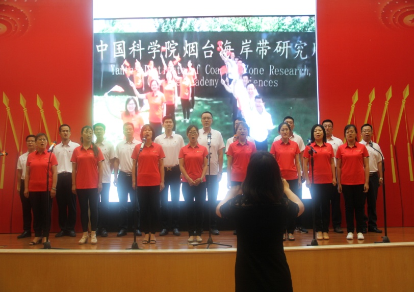 主题报告后,举行了诵唱红色歌曲活动。研究所的7个党支部带来精心准备的14首合唱歌曲,《团结就是力量》、《我们走在大路上》、《不忘初心》、《没有共产党就没有新中国》、《保卫黄河》、《强国一代有我在》、《中国中国鲜红的太阳永不落》等耳熟能详的曲目,唤醒了大家内心深处对党浓厚的感恩之情,也表达了勇于担当时代责任的信心。全体人员合唱《我和我的祖国》,将诵唱红歌活动推向了高潮。