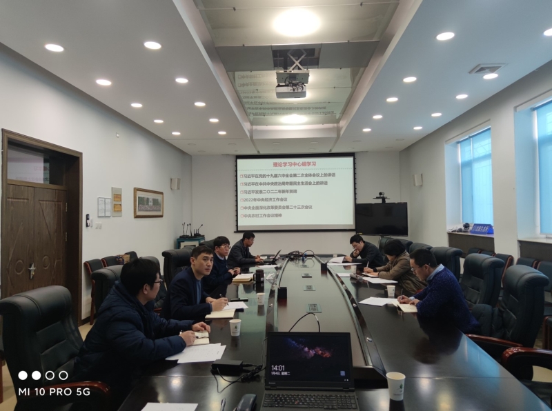 2022年1月4日,沈阳生态所党委召开理论学习中心组会,重点学习贯彻习近平总书记在党的十九届六中全会第二次全体会议上的讲话精神、习近平总书记在中共中央政治局专题民主生活会上的讲话精神、2022年中央经济工作会议精神、中央全面深化改革委员会第二十三次会议精神、中央农村工作会议精神和习近平总书记二〇二二年新年贺词重要精神。党委书记金昌杰领学了习近平总书记的重要讲话和会议精神,党委班子成员参加理论学习中心组会并作交流发言。