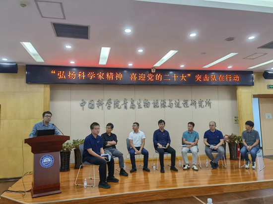 9月30日下午,青岛能源所召开“弘扬科学家精神 喜迎党的二十大”突击队在行动活动。活动以沙龙的形式组织,由能源技术与应用党支部书记江河清主持,党委书记彭辉、研究所6支对标老科学家冠名突击队队员参加。