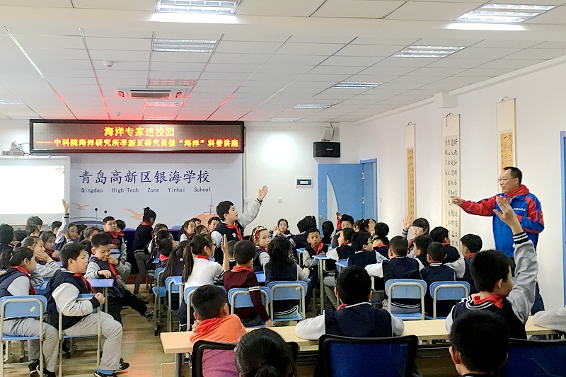 为增强青少年的海洋意识,普及海洋知识,培养创新意识,提升创新能力,海洋所与青岛银海学校共建“耕海探洋”海洋科技教育实践基地,合作开展海洋科技教育,为国家海洋科技发展培养后备力量,并于11月1日举行了基地揭牌仪式。