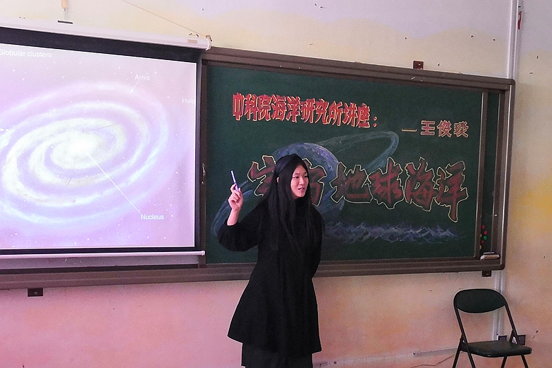 海洋所博士实践团的刘姗姗、王俊琰分别为青岛格兰德学校、爱之帆学校的同学们带去了“赤潮也怕’吃土’”“宇宙、地球、海洋”等科普讲座,并与同学们进行了海洋知识有奖互动。