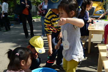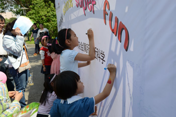 家属日活动还安排了适合学龄前儿童的体验式游戏、DIY手工制作、手绘涂鸦等活动。儿童互动体验区成为了欢乐的海洋。在这里,有的小朋友在做鸡蛋在盐水中浮起来的游戏,有的小朋友在试做肥皂水来吹泡泡,还有的小朋友拿起画笔描绘心中金属所美好的未来。