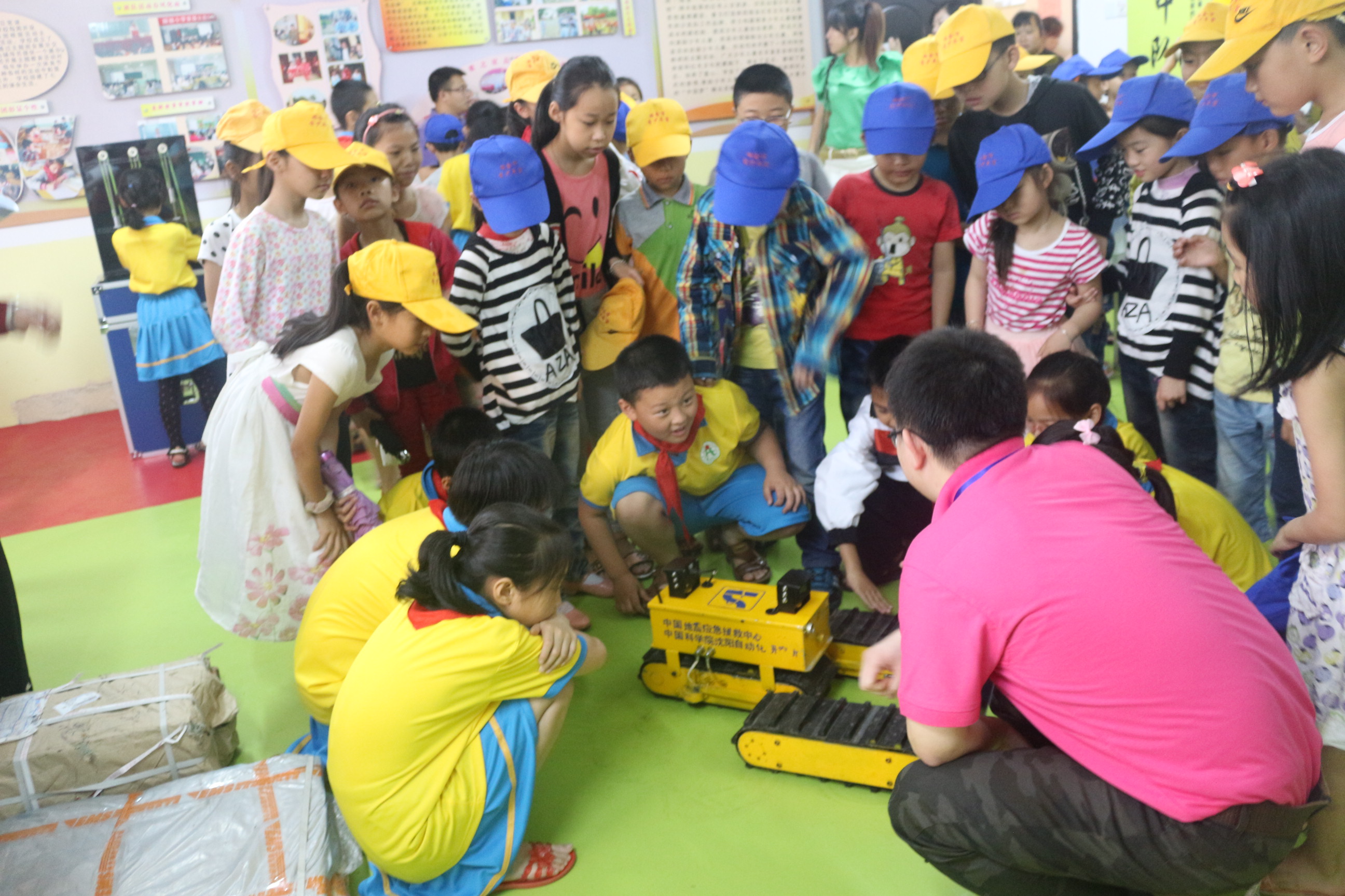 近日,由中国科学院沈阳自动化研究所研制的废墟搜救可变形机器人参加了“科技列车赣南行暨2014年江西省科技活动周”科普活动。科研人员携该款机器人深入多所学校进行科普展示,向公众普及地震救援机器人知识。