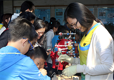 五月的所区,蓝天、绿树、繁花,是一年中最美的时节。今年,全所共有仪器分析化学研究室、精细化工研究室、催化基础国家重点实验室、分子反应动力学国家重点实验室、生物技术研究部,洁净能源国家实验室的燃料电池研究部、生物能源研究部、化石能源与应用催化研究部、节能与环境研究部、低碳催化与工程研究部、太阳能研究部及储能技术研究部共十二个研究室(部)向公众开放,共设计了二十五个参观展点。展示内容在往年的基础上进行了进一步的升级,互动性和趣味性较以往有较大的提高,既包括国际领先的科学设备、国际前沿的科研成果、惠及国民的科技项目、还包括一些能让大家亲自动手的实验演示。如:“神奇旅程:有机合成过程”、“生物质高效转化:用生物技术链接资源和能源”、“小微藻大能量”、“神奇的太阳能:光催化及光伏电池”等等。每个展点都有志愿者精心讲解,针对不同年龄层次观众,讲授不同内容。参观人群摩肩接踵,络绎不绝。公众纷纷表示,能如此近距离感受到科学的魅力,了解到了一个不一样的世界,非常震撼,也非常有收获,同时也希望能有更多的机会走近科学,走近科学人。