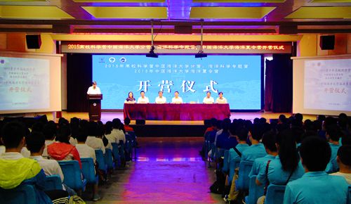 7月22-27日,2015年青少年高校科学营中国海洋大学分营、海洋科学专题营在青岛成功举办。开营仪式在中国海洋大学崂山校区举行,中国科学院海洋研究所副所长王辉、中国海洋大学副校长李巍然、青岛市科学技术协会副主席刘刚等出席仪式,来自河南、山西、甘肃、湖北、江西、山东等地的近400名营员参加仪式。
