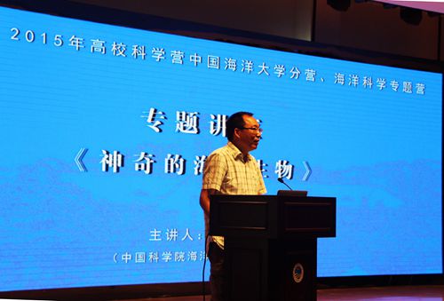 开营仪式结束后,中科院海洋研究所李新正研究员为营员们作了题为《神奇的海洋生物》的专题讲座,生动形象地介绍了主要的海洋生物门类、海洋生物采集相关知识。夜光虫、海绵动物、石鳖等冷门的海洋生物吸引了营员们的视线,海洋生物间的共生关系、南北极海洋生物考察、“发现”号、“蛟龙”号深海探测视频等内容,为营员们打开了海洋世界的大门。讲座后,来自山西省晋城市阳城一中的陆芷涵表示李新正教授的讲座和他展示的图片、视频带给她极大的震撼,对高校科学营接下来的活动也充满了期待。