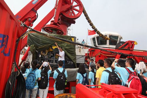 参观“科学”号海洋科学综合考察船 技术人员讲解“发现”号深海机器人工作原理