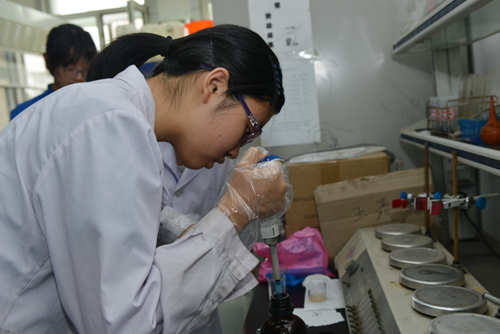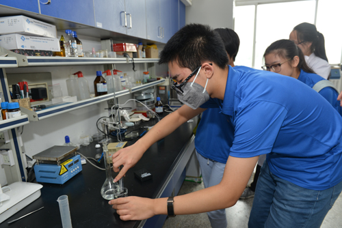 在随后两天的科学体验中,家属营和省实验的营员们共同走进高性能陶瓷材料研究部、环境功能材料研究部、功能薄膜与界面研究部和催化材料研究部,在青年导师的指导下,体验了科学实验的全过程:在净水材料实验室,他们用不同的材料和方法杀灭水中各类细菌、微生物、有机物,将致癌物转变为无害物质;在先进陶瓷材料实验室,他们用先进的储能材料亲自动手组装了纽扣电池并测试,并参与了制备气凝胶;在功能薄膜与界面实验室,他们利用反应离子刻蚀方法在SiO2基片上画画,体验了能够利用人体体温发电的半导体材料的奇妙;在催化材料研究部,他们亲手制备新型催化材料并用自己制备的材料实现了去除pm2.5颗粒。