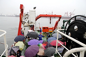 7月31日,中科院海洋生态与环境科学重点实验室主任俞志明研究员在“科学三号”科考船上举行了一场别开生面的科普活动——“还海岸一片洁净”,为参加此次活动的30余位中学生进行了有害藻华专题讲座,并带领同学们观摩、体验了改性粘土治理有害藻华的室内消除实验和现场喷洒作业过程。此次活动由青岛市教育局、青岛市科协、青岛出版集团、青岛旅游集团共同协办,国内包括中国国际广播电台、中国科学报、青岛电视台、“青岛蓝睛”、青岛日报、半岛都市报等多家新媒体平台对活动全程进行了直播和报道。
