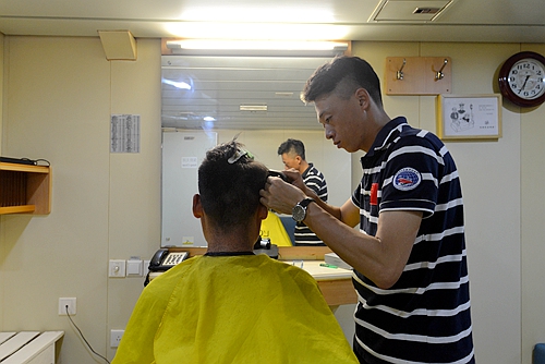 船队员在“科学”轮上理发