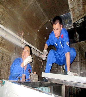 机舱烟囱内部辛勤作业