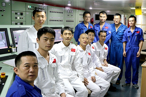 靳宪芳轮机长带领的轮机部团队