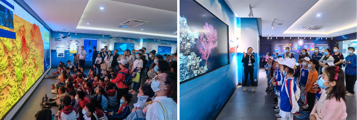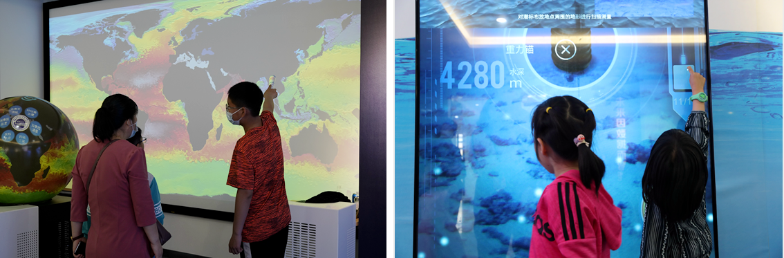 在海洋人工智能与大数据中心展厅,通过海洋数据可视化演示系统,公众看到了洋流、温度、盐度等海洋要素的全球分布,了解了人工智能在科学研究以及服务经济社会发展方面的实际应用,也看到了利用“发现”号无人深潜器拍摄到的深海科考视频,公众们无不惊叹于科技手段的进步,震惊于幽幽深海中的生物竟如此多彩、各异而美丽,沉醉于大自然巧夺天工的天然呈现。