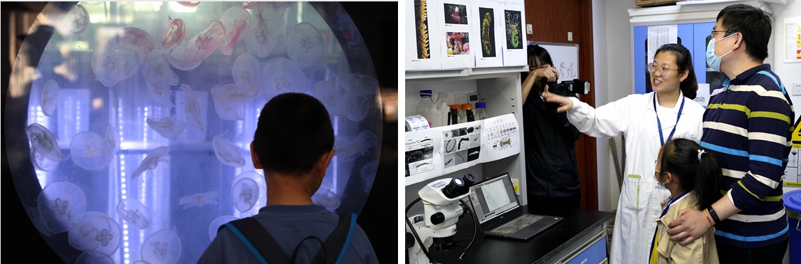 同时备受公众欢迎的还有海洋湖沼知识有奖问答,水母、海参、贝类等养殖实验室以及海洋生物演化与环境适应实验室等。