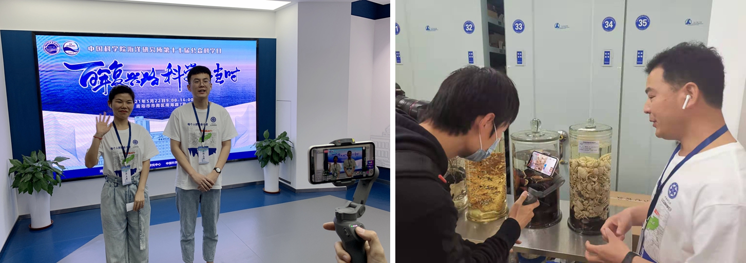 本次公众科学日活动采用线上+线下相结合的方式,通过哔哩哔哩平台全程直播。直播中,公众跟随两位主持人在线云游海洋所,体验“蓝色”魅力,并与科研人员一起通过科学实验“探秘海洋”,进行了生动有趣的海洋科普知识问答,开启了一场“奇妙海洋探秘之旅”。