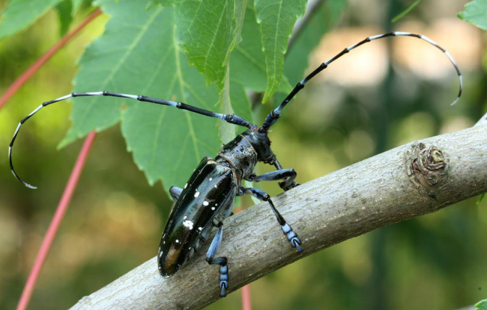 图5.光肩星天牛成虫 Anoplophora glabripennis,危害悬铃木、柳、杨等