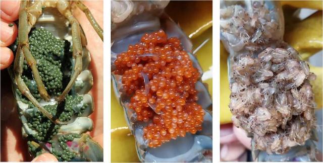 红螯螯虾抱卵孵化的不同阶段(图片来源:作者提供)