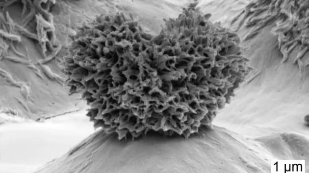 这种材料的疏水原理和上述疏水材料类似,都是用纳米微粒制造起隔离作用的小突起。下图珊瑚礁一样的构造就是由二氧化硅纳米颗粒形成的“Y”形结构,这样的结构密布在材料表面,“枝丫”之间托着气泡,形成空气隔层,从而起到与流体最小化接触的作用。