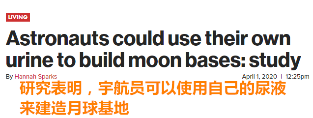 按照这个思路,只要宇航员在月球用自己的尿液和月球现有的尘土结合,就能实现自给自足,得到适合建造月球基地的材料。