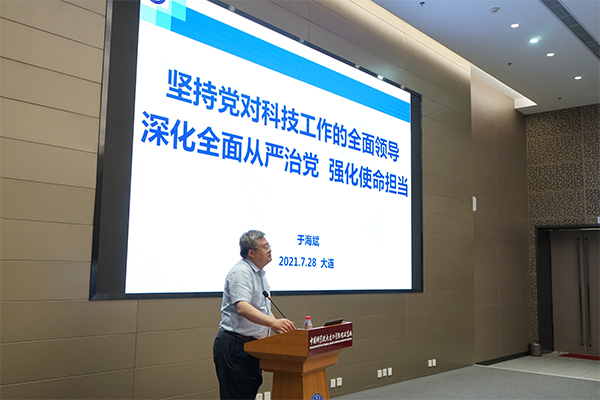 在专题报告模块,于海斌作了题为《坚持党对科技事业的全面领导 深化全面从严治党 强化使命担当》的专题报告,报告系统学习了习近平总书记在中国共产党成立100周年大会上的重要讲话精神,侯建国书记的专题党课报告精神,同时对2020年度分院系统单位领导班子考核等情况进行了通报,并对2021年度党建重点工作和党史学习教育工作进行了部署。