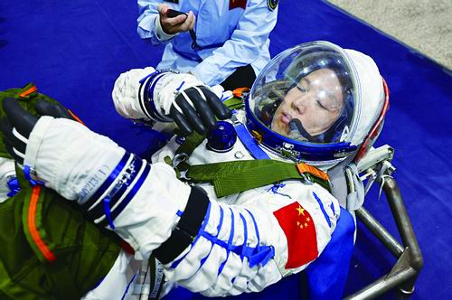 “离心机训练会给胸腹部造成挤压感,但我想到了太极拳中一些相通的地方,知道怎样能更好地保护内脏。”张洪章说,“模拟失重水槽训练更有意思,水下训练服又厚又重,限制四肢自如运动。人在里面先顺着服装漂浮的方向,再慢慢引导至自己的目标方向,而不是一味对抗服装、消耗力量,这样就可以像鱼一样在水里游动了。”