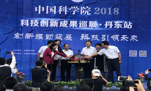 2018年9月3日上午,“中国科学院2018年创新成果巡展﹒丹东站”开幕式在丹东新区美术馆举行,丹东市委书记葛海鹰、中国科学院科学传播局局长周德进、中国科学院沈阳分院副院长马越红出席开幕式并讲话,参加开幕式的还有中国科学院文献情报中心副主任潘亚楠、丹东市人大常委会副主任于梅、丹东市政协副主席唐亮,开幕式由丹东市副市长潘爽主持。