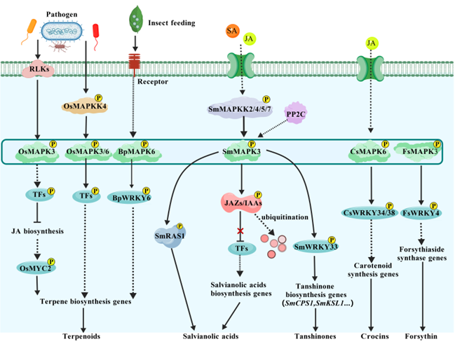 图2. MAPK调控药用植物活性成分合成的作用模式图