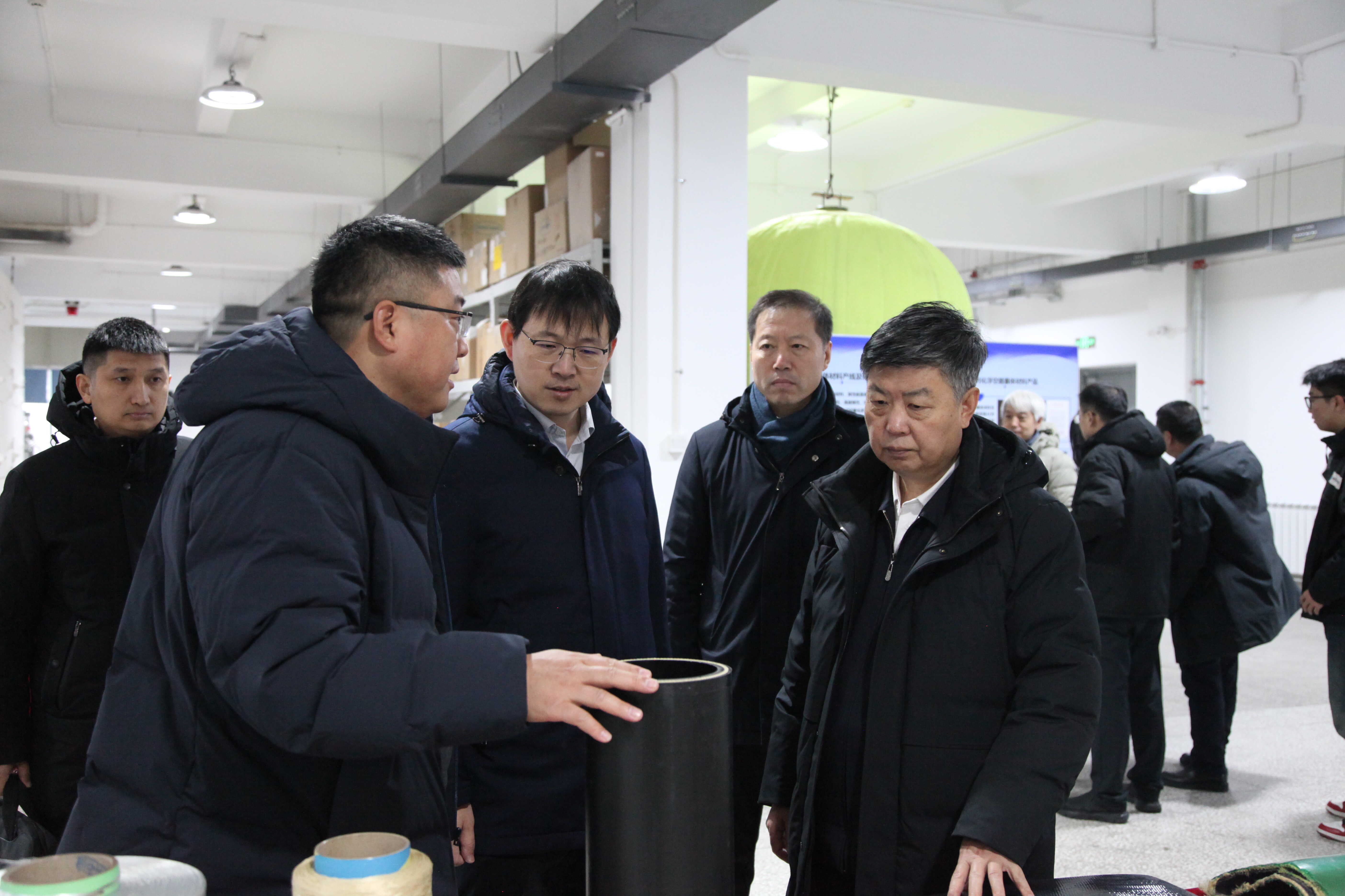 吴波一行先后实地调研了聚乳酸生物医用材料、钙钛矿太阳能电池、高性能囊体材料等重点研究方向,详细查看相关科研成果,与科研人员深入交流,详细询问了技术创新细节、行业发展现状及产业转化前景等情况。