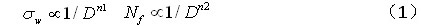 研究发现,超高周疲劳强度 w 及疲劳寿命 Nf 随夹杂物尺寸D增大而降低,其依赖关系可以分别表示为: