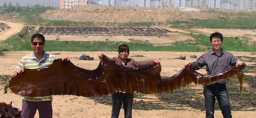该项目获得农业部行业公益性专项、中国科学院知识创新项目和科技部“863”项目资助。6月6-7日,孙松所长到山东荣成市蜊江水产有限责任公司养殖海区进行了现场考察,肯定了课题组取得的科研成绩,并要求以产业和百姓需求为导向,不断提高科技创新能力,切实为区域经济发展提供科技支撑。6月8日,中国科学院农业项目办公室组织专家对两个杂交选育海带新品系进行了现场验收,专家一致认为新品系经济性状优良,同意通过验收。