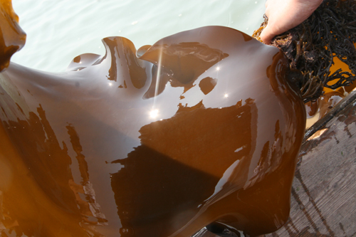 科研人员现场测量海带长度