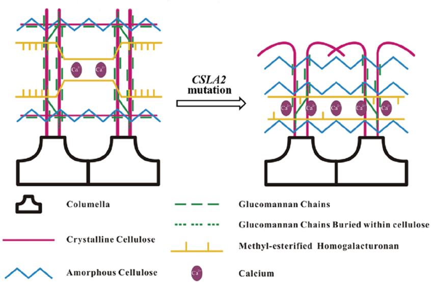 纤维素合成类似酶CSLA2维持种子粘液质结构示意图