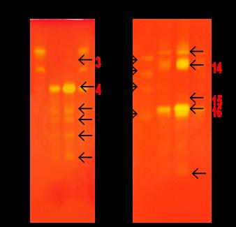 图1. 木聚糖酶(右)和内切纤维素酶(左)活性染色图谱